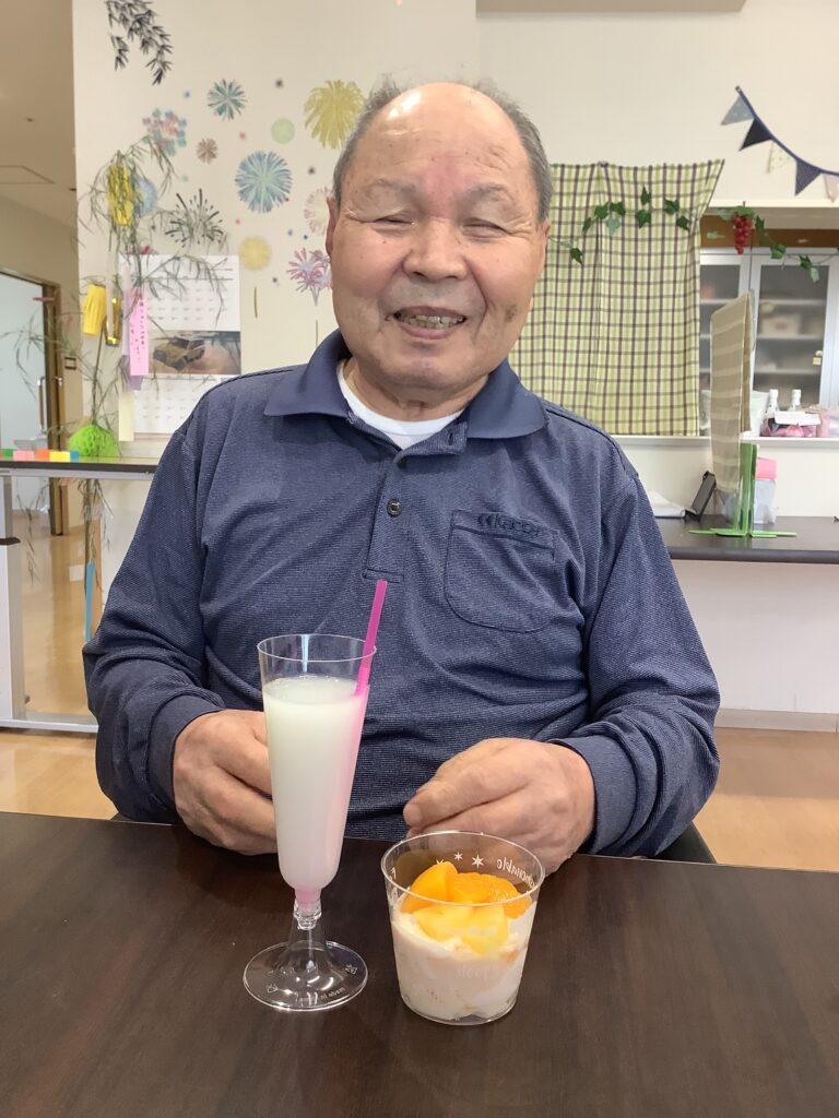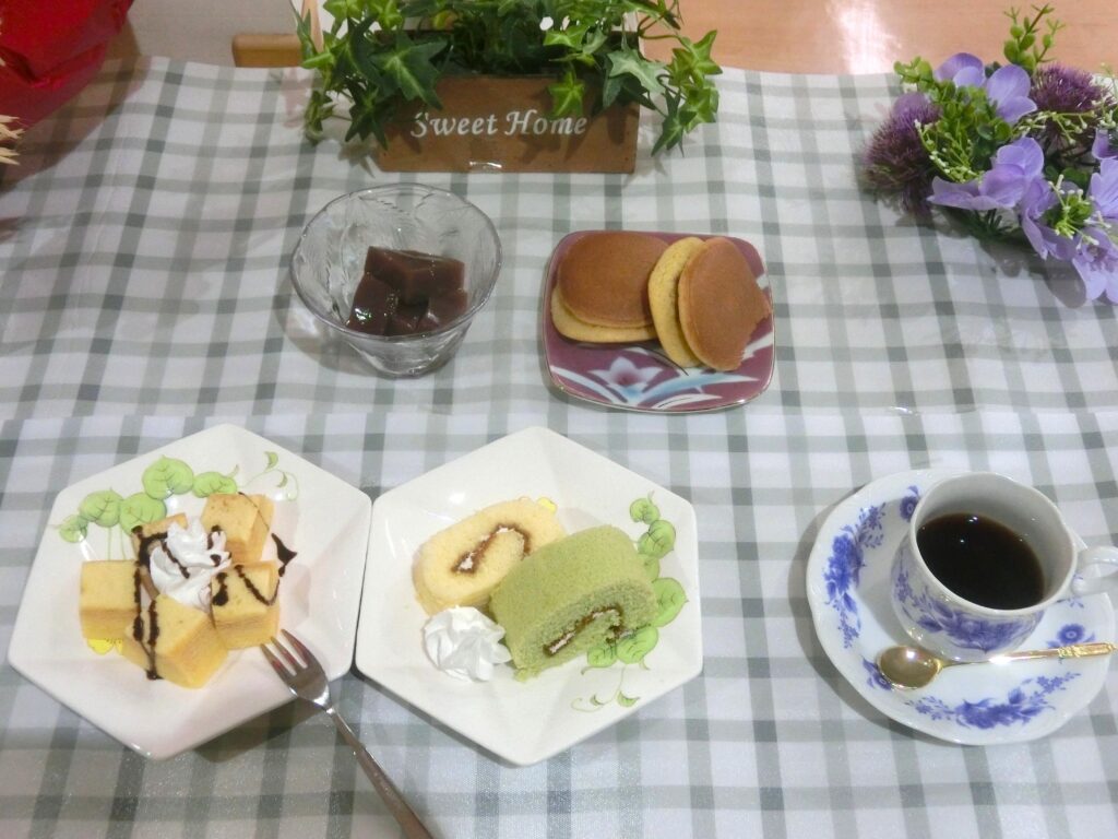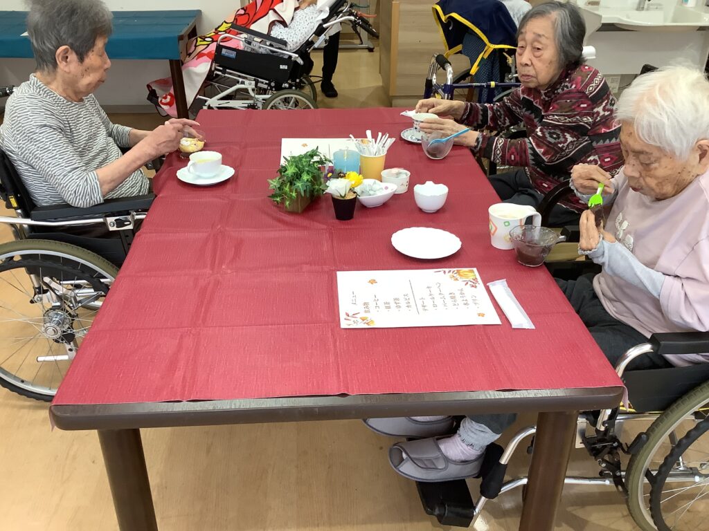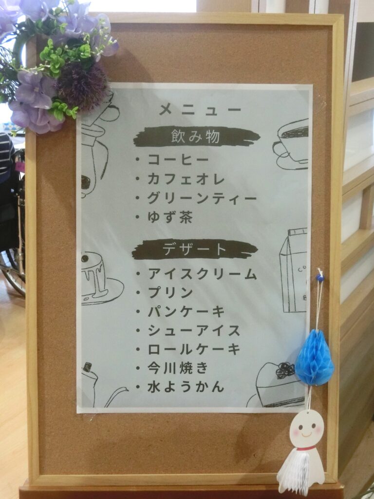 ・定期的に喫茶のレクリエーションをおこなっていて、お好きなデザートと飲み物を選んでいただけます。6月は2階介護職員が、10月は3階介護職員が担当しました。