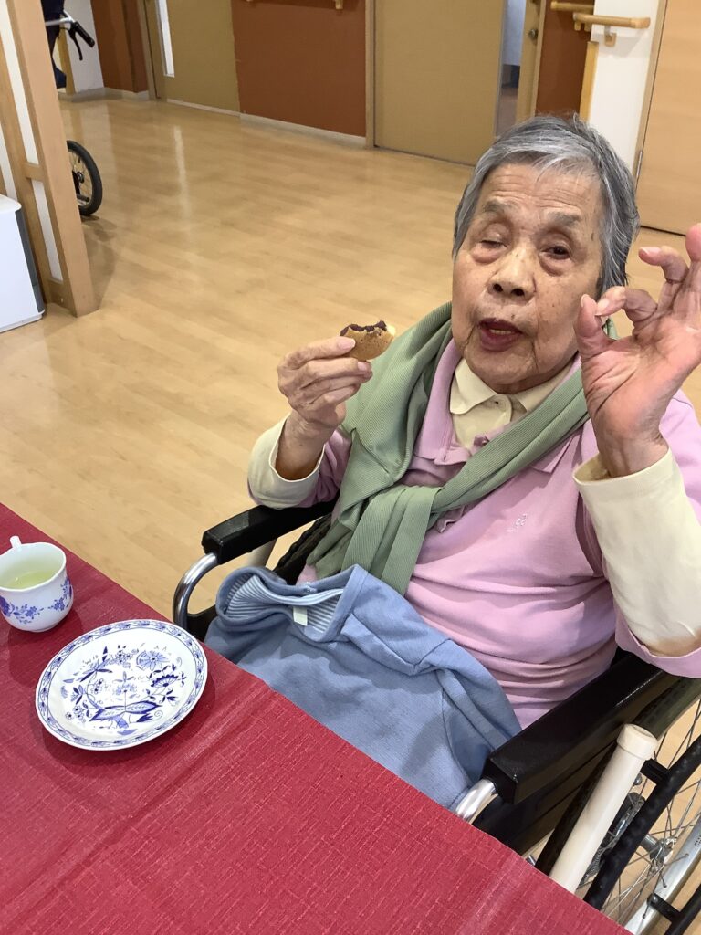 ・今年はお花見の代わりに、二胡演奏のボランティアの方をお招きし施設内で演奏会を開催しました。「⾒上げてごらん夜の星を」「⽉の砂漠」「ふるさと」などの名曲を⼆胡の素敵な音色や歌声で披露していただきました。演奏を聴きながら、桜や椿の形をした春らしい茶菓子と抹茶を召し上がられました。